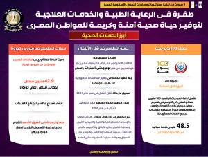 وأضاف أن ذلك بجانب تطبيق منظومة التأمين الصحي الشامل والتوسع في إطلاق المبادرات الصحية المتنوعة، والعمل على وصول خدماتها إلى أنحاء الجمهورية كافة، مع الحرص على تكثيف معدلات تقديم الخدمة في القرى والمناطق النائية والأكثر احتياجاً، بما يخفف العبء عن كاهل المواطنين، ويسهم في الاكتشاف المبكر للأمراض خاصة المزمنة وغير السارية وسهولة علاجها، فضلاً عن رسم خريطة صحية واضحة ومتكاملة للمجتمع المصري بما يحقق مستهدفات “رؤية مصر 2030” للارتقاء بالمنظومة الصحية؛ الأمر الذي انعكس على تحسن الرؤية الدولية لمصر ومؤشراتها في هذا الملف.