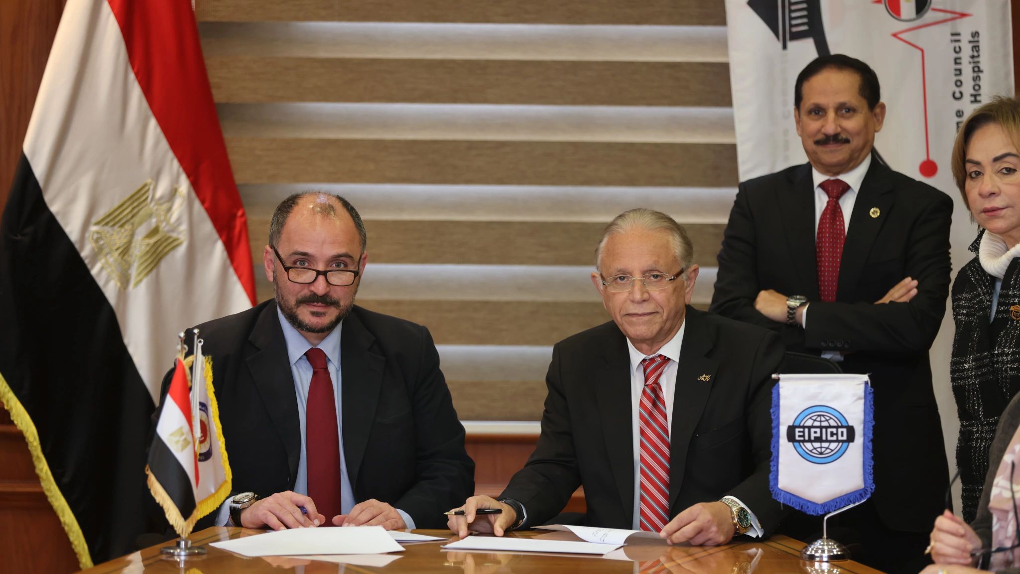 وقع الاتفاقية كل من الدكتور عمر شريف عمر، أمين المجلس الأعلى للمستشفيات الجامعية، والدكتور أحمد كيلاني، رئيس مجلس الإدارة والعضو المنتدب لشركة إيبيكو.