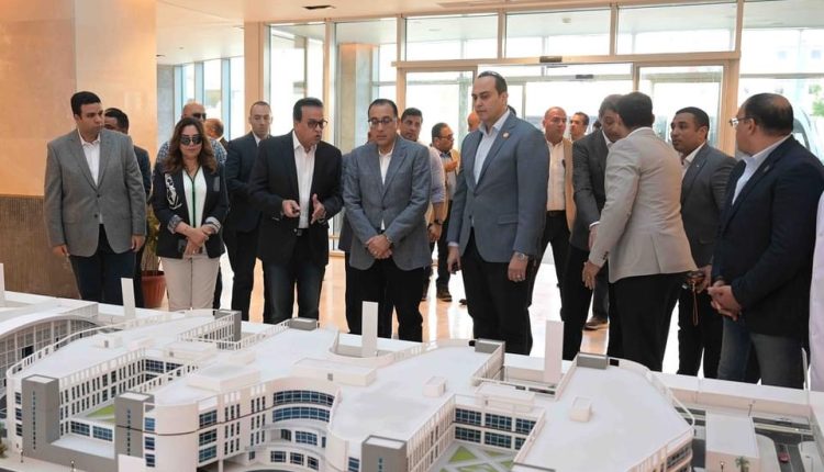 توجه الدكتور مصطفى مدبولي، رئيس مجلس الوزراء، ومرافقوه، لتفقد مجمع السويس الطبي التابع للهيئة العامة للرعاية الصحية خلال زيارته لمحافظة السويس اليوم.