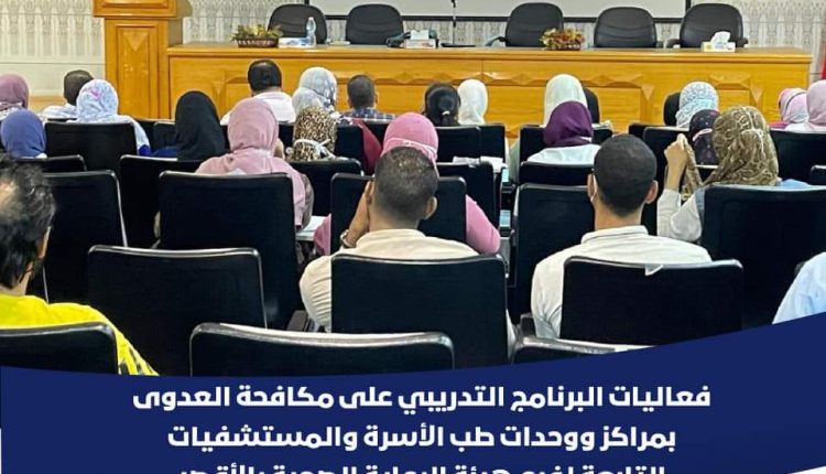 تم عقد برنامج تدريبي لمسؤولي مكافحه العدوى بالمستشفيات والمراكز الطبية ووحدات طب الأسرة التابعة لفرع هيئة الرعاية الصحية بمحافظة الأقصر، وذلك بالتنسيق مع إدارة التدريب والتعليم الطبي المستمر بفرع الهيئة بالأقصر.