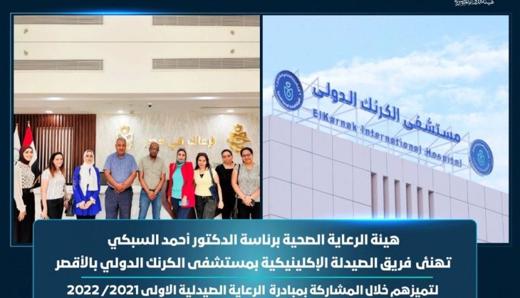 هنأت هيئة الرعاية الصحية برئاسة الدكتور أحمد السبكي رئيس مجلس إدارة الهيئة، ومساعد وزير الصحة والسكان، والمشرف العام على مشروع التأمين الصحي الشامل، فريق الصيدلية الإكلينيكية بمستشفى الكرنك الدولي التابع للهيئة بمحافظة الأقصر، لتميزهم وحصولهم على المركز الثاني على مستوى الجمهورية، ضمن 37 مشروعًا مشارك بمبادرة هيئة الدواء المصرية للرعاية الصيدلية “ممارسة دوائية متميزة-100 مشروع تطويري” 2021/ 2022.