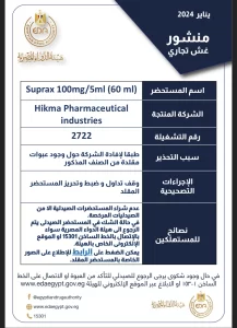 أصدرت هيئة الدواء المصرية منشورا تحذيريا بشأن مستحضر سبراكس حيث حذرت من عدم شراء المستحضرات الذى تحمل تشغيلته رقم 2722 إنتاج شركة الحكمة.