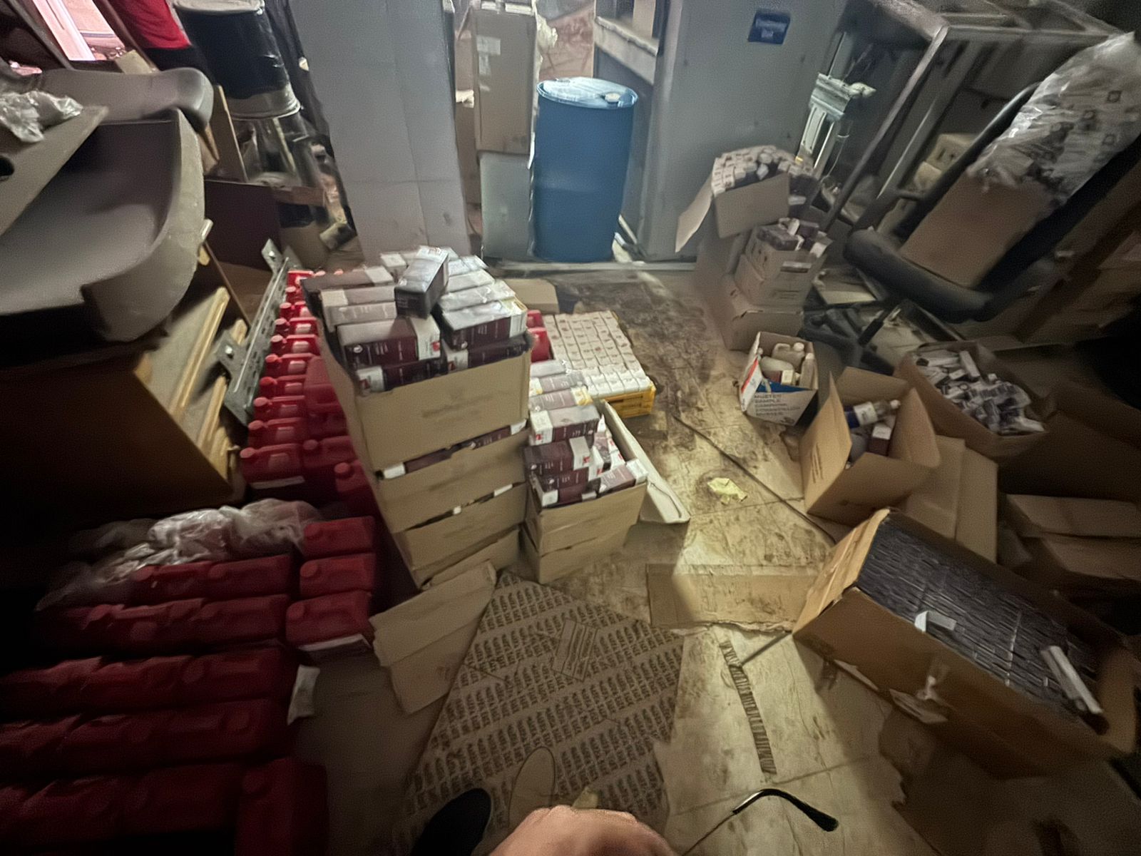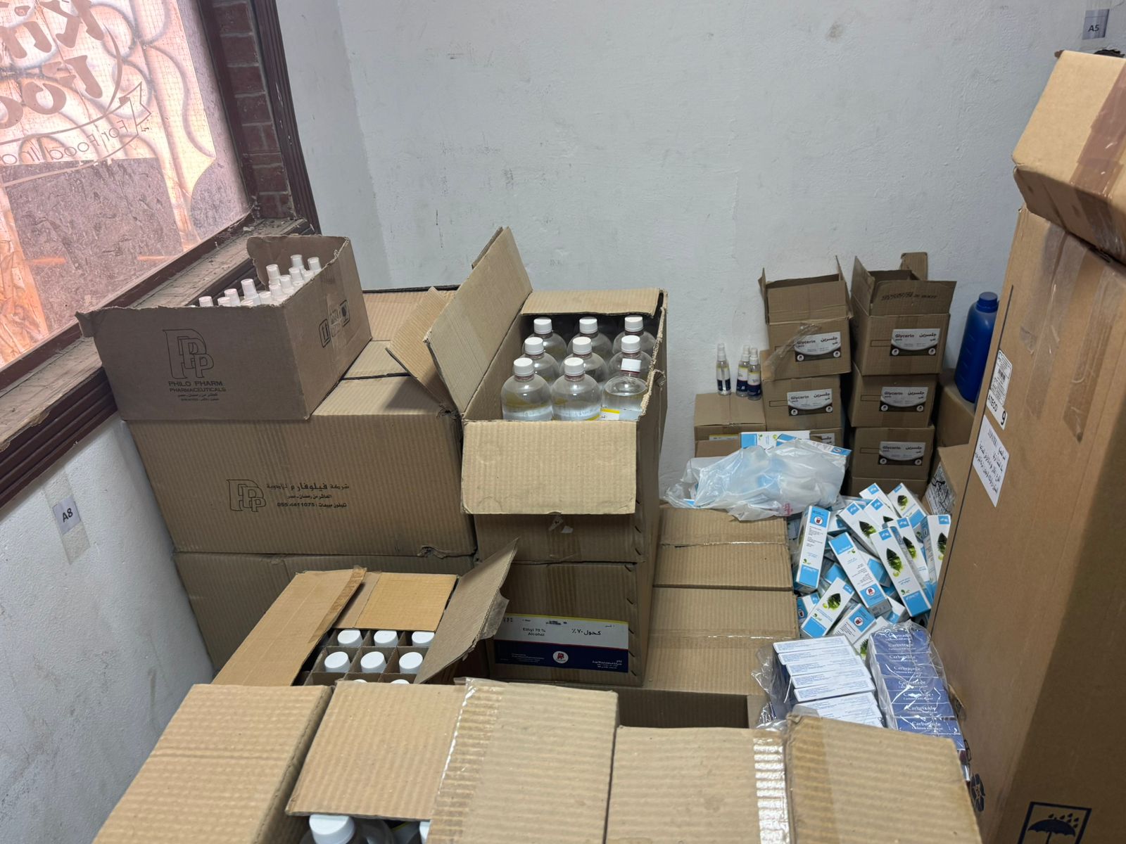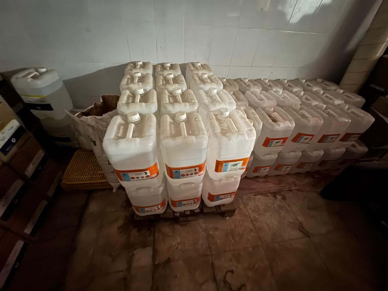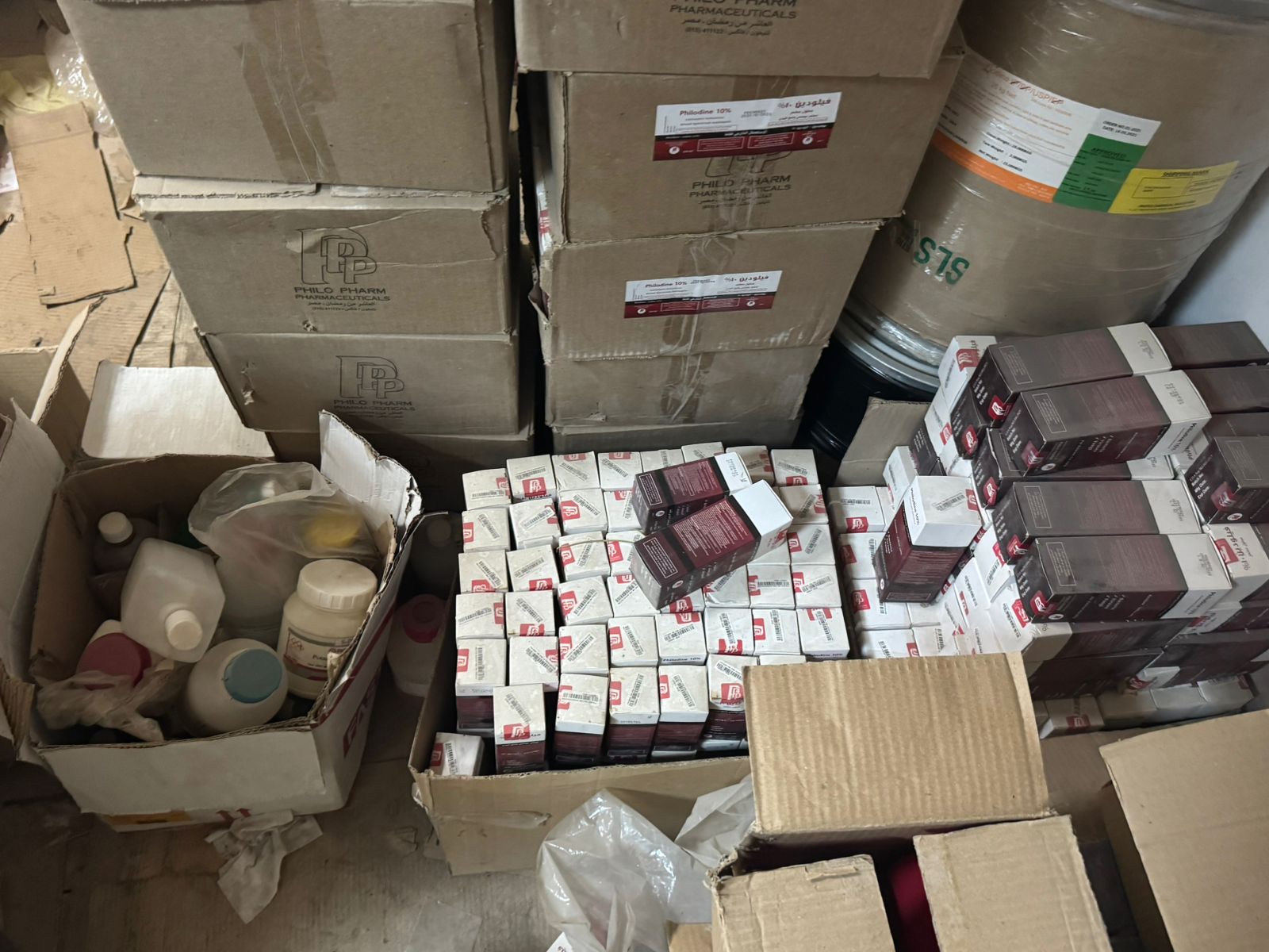 وبتقنين الإجراءات، ودخول المكان؛ تم ضبط عدة مخالفات، من إدارة منشأة بدون ترخيص لمخزن غير مرخص وغير مستوفي الاشتراطات الصحية، والقيام بتعبئة وتصنيع المستحضرات طبية، وضبط كمية من المستحضرات الطبية داخل المخزن مجهولة المصدر بدون فواتير، والمواد الخام مجهولة المصدر بدون فواتير، كميات من “الجراكن والعبوات الفارغة” التي تستخدم في التعبئة، ووجود ماكينة تعبئة، خمسة تانكات تحضير مواد خام، وميزان، وماكينة إنتاج.