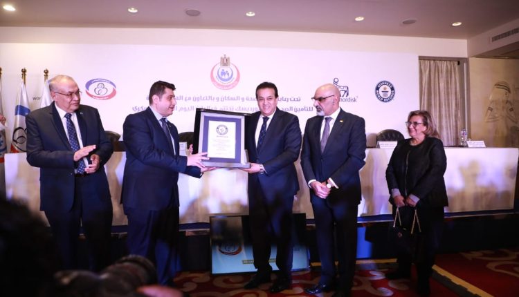 تسلم الدكتور خالد عبدالغفار وزير الصحة والسكان، شهادة من موسوعة «جينيس ريكورد» للأرقام القياسية بتسجيل أكبر تجمع لتوعية الأطفال المتعايشين مع مرض السكري من النوع الأول.