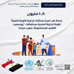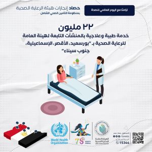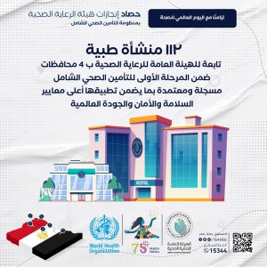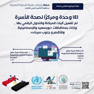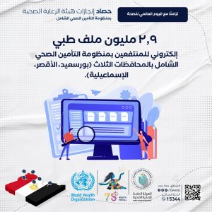 تزامنًا مع احتفال العالم بـ «يوم الصحة العالمي» الذي يُحتفي به في يوم 7من إبريل من كل عام، ويتم الاحتفال هذا العام تحت شعار “الصحة للجميع”، استعرضت هيئة الرعاية الصحية أبرز إنجازاتها في تحقيق التغطية الصحية الشاملة للمواطنين من خلال «انفوجراف»