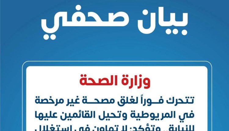 وتشير الوزارة إلى تحركها الفوري لاتخاذ الإجراءات القانونية اللازمة ضد القائمين على هذا الكيان غير الشرعي، بما في ذلك إحالة الواقعة إلى النيابة العامة للتحقيق في جميع الادعاءات، وغلق المنشأة بشكل نهائي، بالتعاون مع الجهات المختصة.