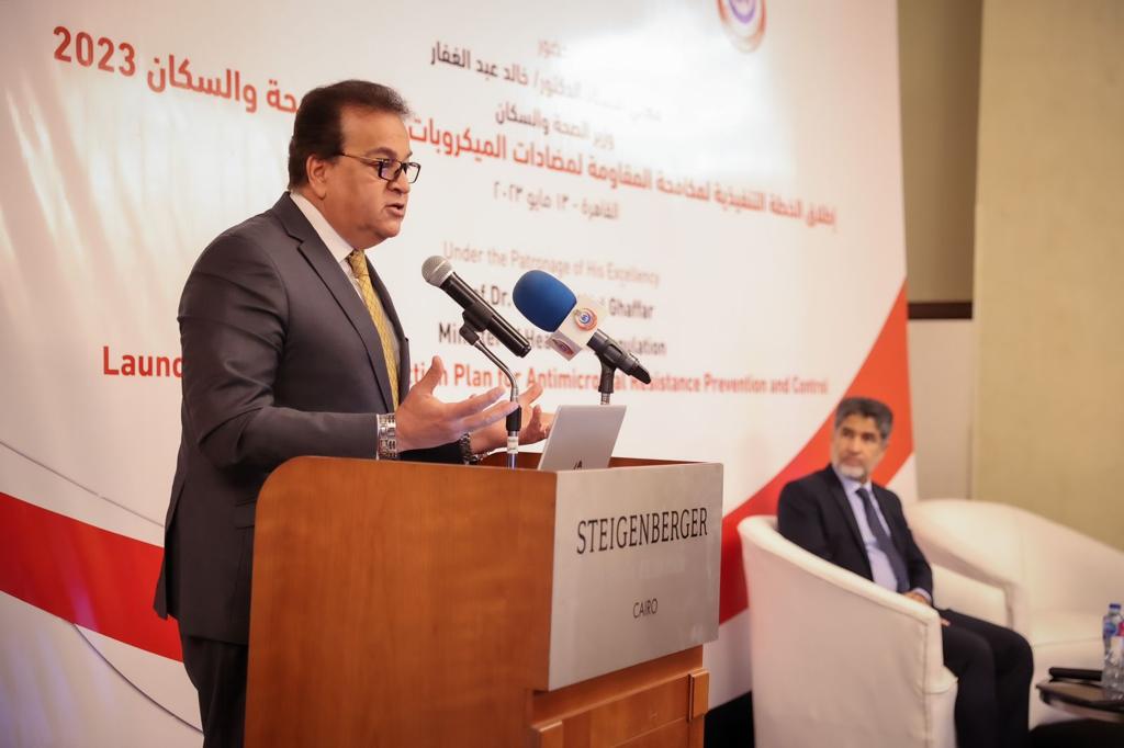 جاء ذلك خلال فعاليات إطلاق الخطة التنفيذية لمكافحة المقاومة لمضادات الميكروبات بوزارة الصحة، بحضور الدكتور أحمد المنظري المدير الإقليمي لمنظمة الصحة العالمية لشرق المتوسط، وممثل الصحة العالمية بمصر، وعدد من قيادات وزارة الصحة، ووكلاء الوزارء ومديريات الشؤون الصحية بالمحافظات، بالإضافة إلى الأطباء المعنيين بالشأن الوقائي والعلاجي.