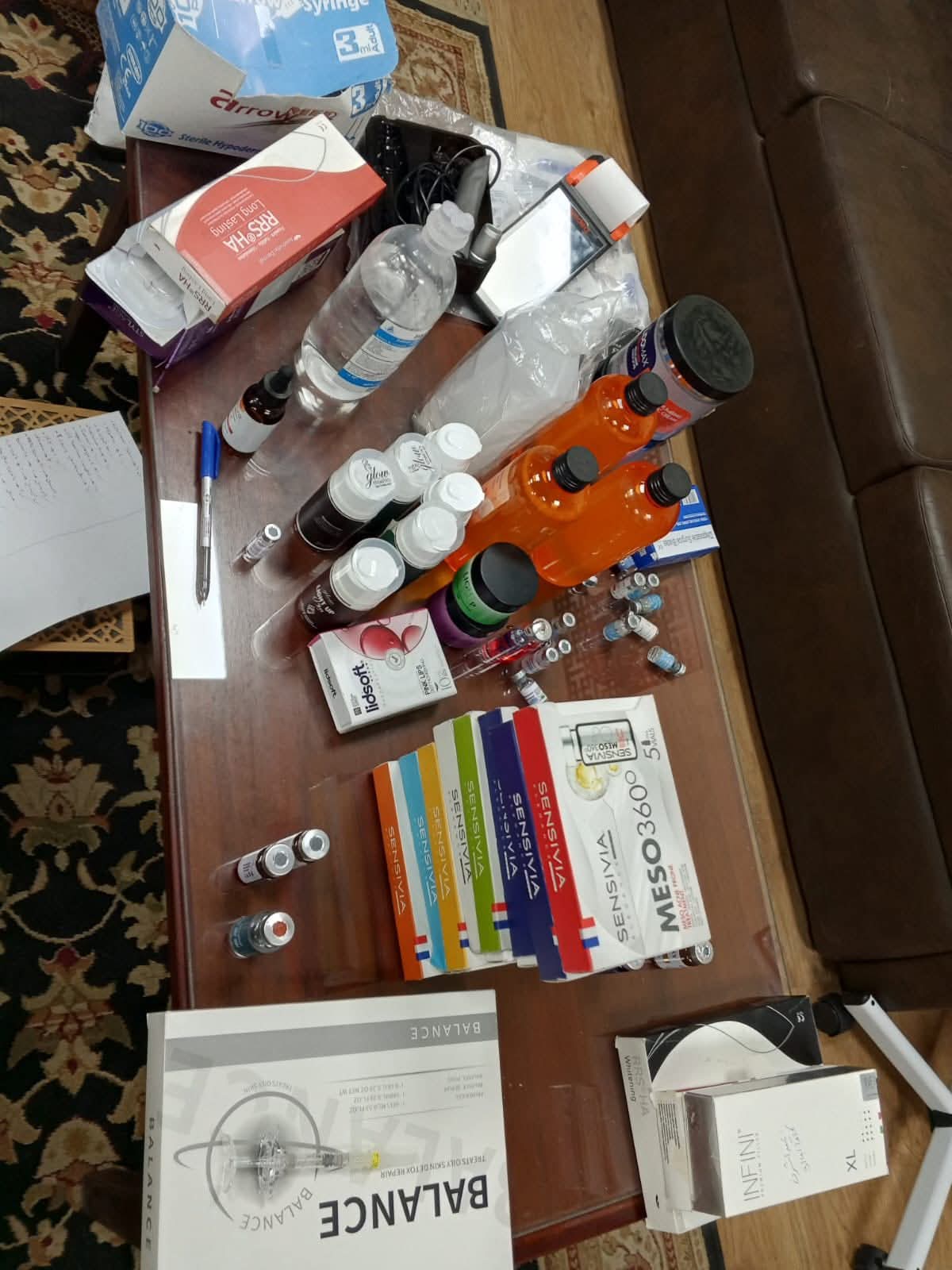 وأضاف أن العيادة كانت تعمل بدون ترخيص مخالفةً لقانون تنظيم المنشآت الطبية رقم 53 لسنة 2004، كما تم ضبط كميات كبيرة من الأدوية ومستحضرات التجميل غير المسجلة، بالإضافة إلى عدم وجود عقد لتداول النفايات الخطرة، وقصور حاد في سياسات مكافحة العدوى، مما يشكل خطراً مباشراً على الصحة العامة.