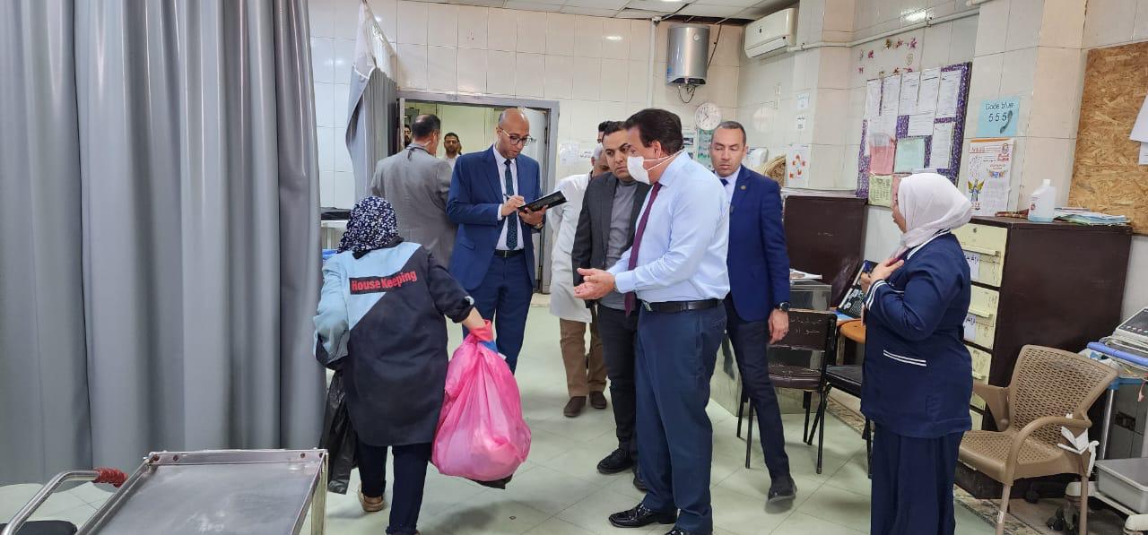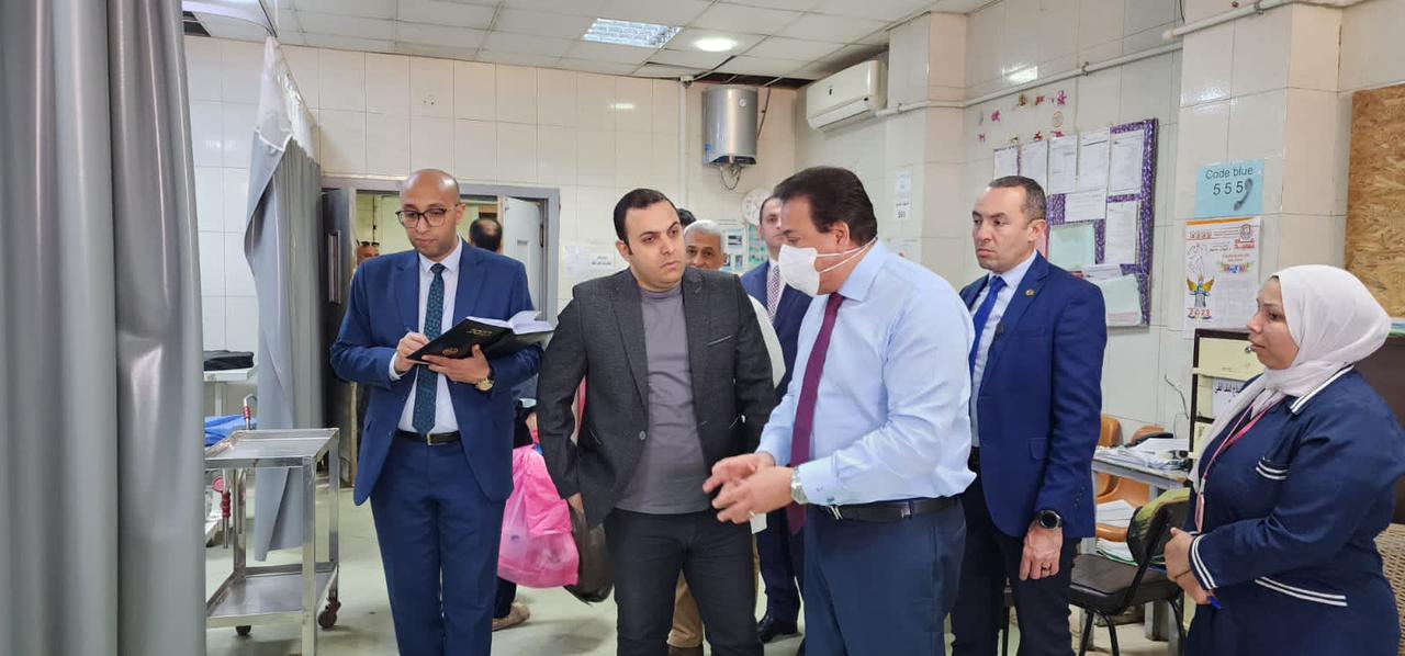 وقال «عبدالغفار» إن الوزير لاحظ أن وجهات المستشفى متهالكة، كما يوجد تسريب مياه على الحوائط الخارجية، مما يؤثر على سلامة المبنى، كما رصد الوزير تكدس المواطنين بالعيادات الخارجية، إلى جانب وجود أسرة متهالكة ملقاه في ممر أمام المستشفى، علاوة على وجود أرض فضاء أمام مبنى المستشفى مليئة بالقمامة، ومخلفات البناء والأشجار، نتيجة لعدم استغلالها.