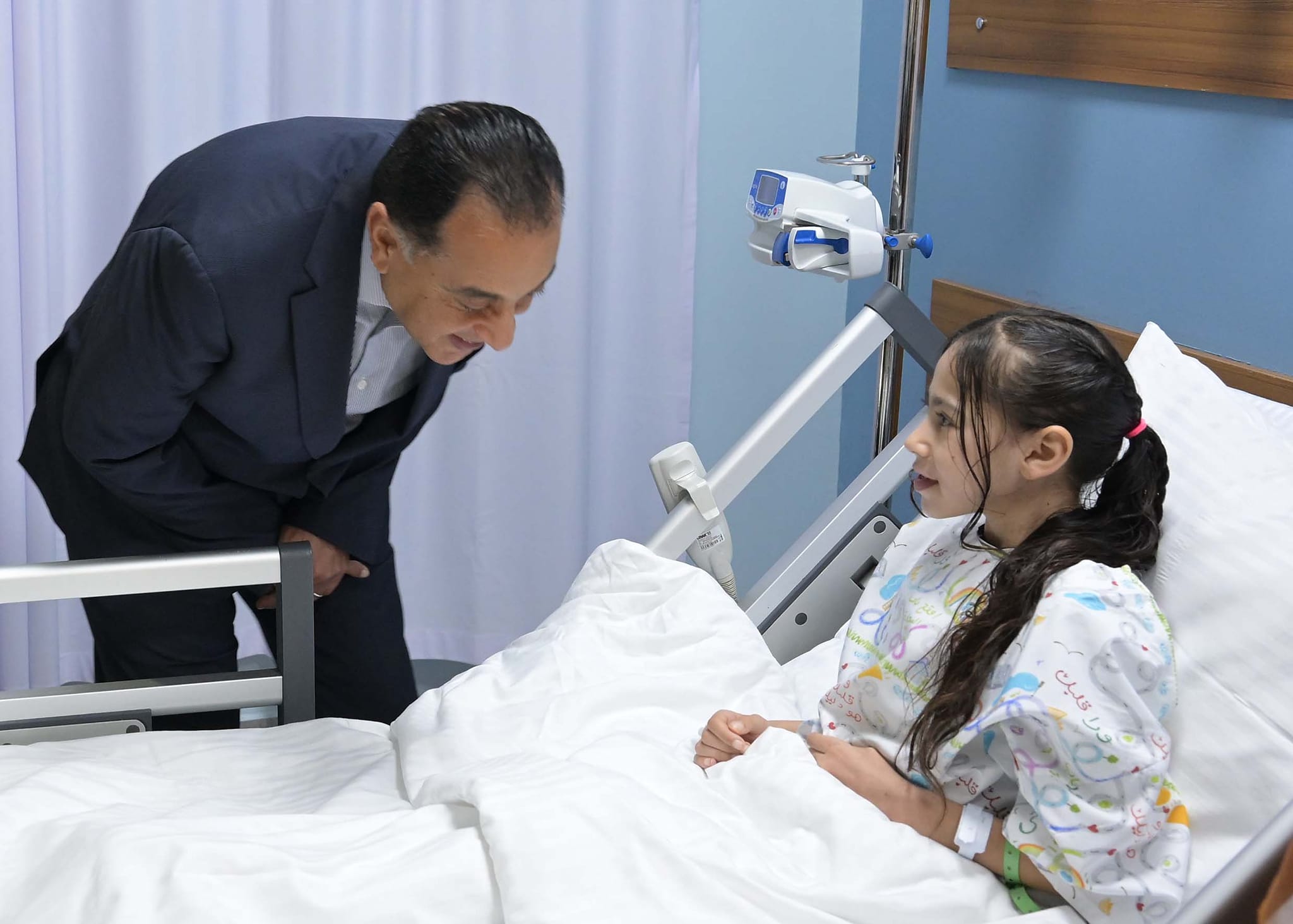 وحرص رئيس مجلس الوزراء على إجراء حوار ودي مع طفلة يتم علاجها داخل المستشفى، حيث اطمأن على حالتها، وتمنى لها الشفاء العاجل.