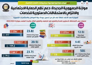 وياتي ذلك ضمن خطة الدولة المصرية لمواجهة التحديات الاقتصادية الجديدة والمتلاحقة التي تواجه العالم، حيث قامت بهيكلة الموازنة العامة للعام المالي المقبل بما يتسق مع المستجدات الراهنة، ووضع حلولاً وتوقعات للتعامل مع مختلف السيناريوهات، حيث عملت على تحقيق الانضباط المالي الكامل في الإنفاق وإعادة تنظيم الأولويات دون المساس بمخصصات برامج الحماية الاجتماعية إلى جانب الصحة والتعليم ودعم الفئات الأكثر احتياجاً.