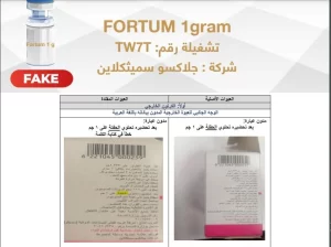 حذرت هيئة الدواء المصرية، من وجود عبوات مغشوشة من المستحضر الدوائي “FORTUM 1gram”، وهو مضاد للجراثيم والعدوى.
