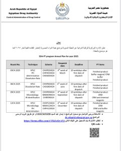أعلنت الإدارة المركزية للرقابة الدوائية عن الخطة السنوية لبرنامج هيئة الدواء المصرية لإختبار الكفاءة الفنية لعام 2025 EDA-PT Program.