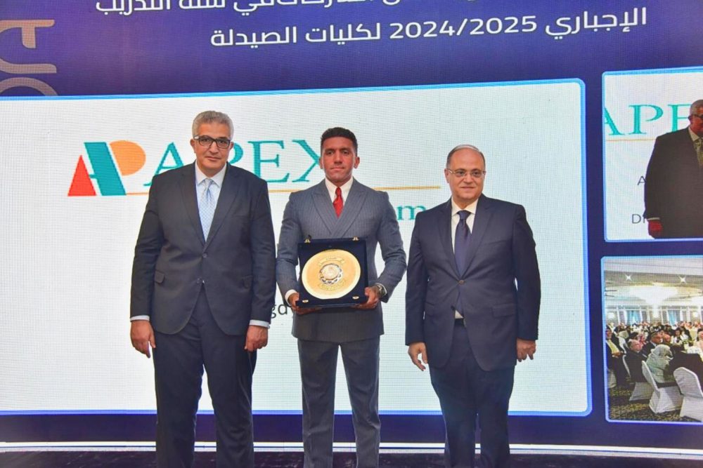 وخلال الحفل كرمت الهيئة الدكتور أحمد علبة، نائب رئيس مجلس إدارة شركة ايبكس فارما، تقديرًا لدور الشركة كشريك نجاح من القطاع الخاص في تنفيذ البرنامج، وما قدمته من دعم وإسهام فاعل في تدريب طلاب الامتياز، بما يعكس التزامها بدعم التعليم الصيدلي وتطوير الكوادر البشرية.