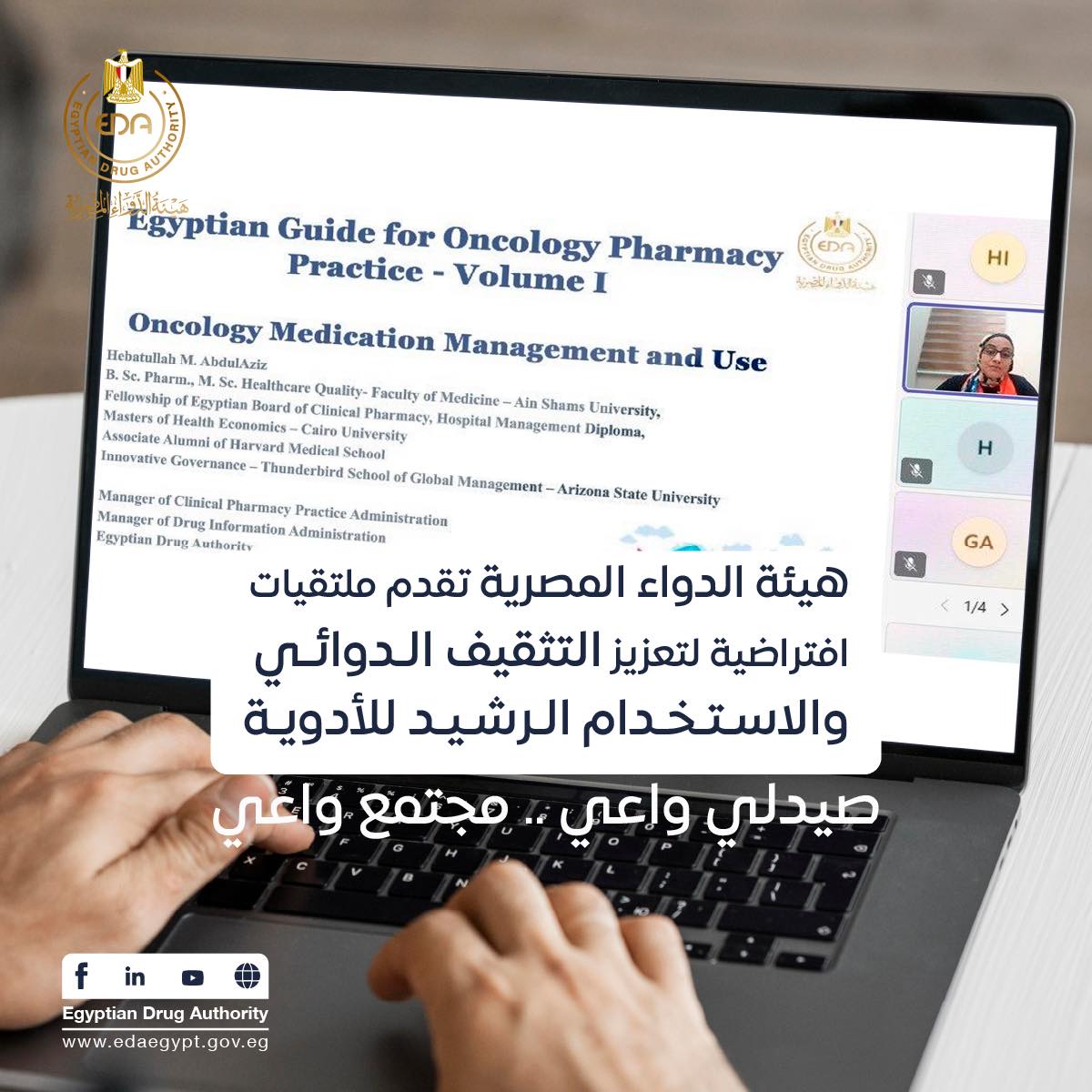 قدمت هيئة الدواء المصرية مجموعة من المحاضرات الافتراضية عبر الإنترنت، وذلك في إطار فعاليات مبادرة الرعاية الصيدلية في الممارسات الدوائية “صيدلي واعي … مجتمع واعي”، والتي تستهدف صيادلة المجتمع العاملين في الصيدليات العامة، خلال الفترة من يوليو إلى سبتمبر 2025.
