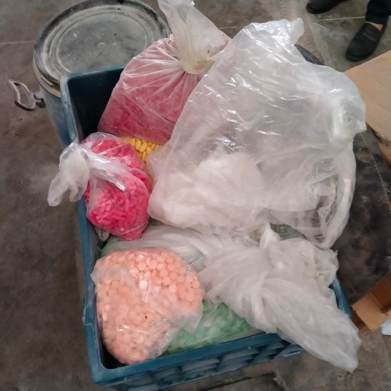 حيث تم ضبط خط إنتاج كامل للتصنيع بعدد أربعة ماكينات، وما يقارب 2.955 طن من المواد الخام مختلفة الأنواع المستخدمة في التصنيع و 700 ألف قرص وکیس مکمل غذائی مختلفة الأنواع، وكمية من العبوات البلاستيكية والكراتين الفارغة المعدة للتعبئة، وكميات من المنتج النهائي المعدة للتسويق