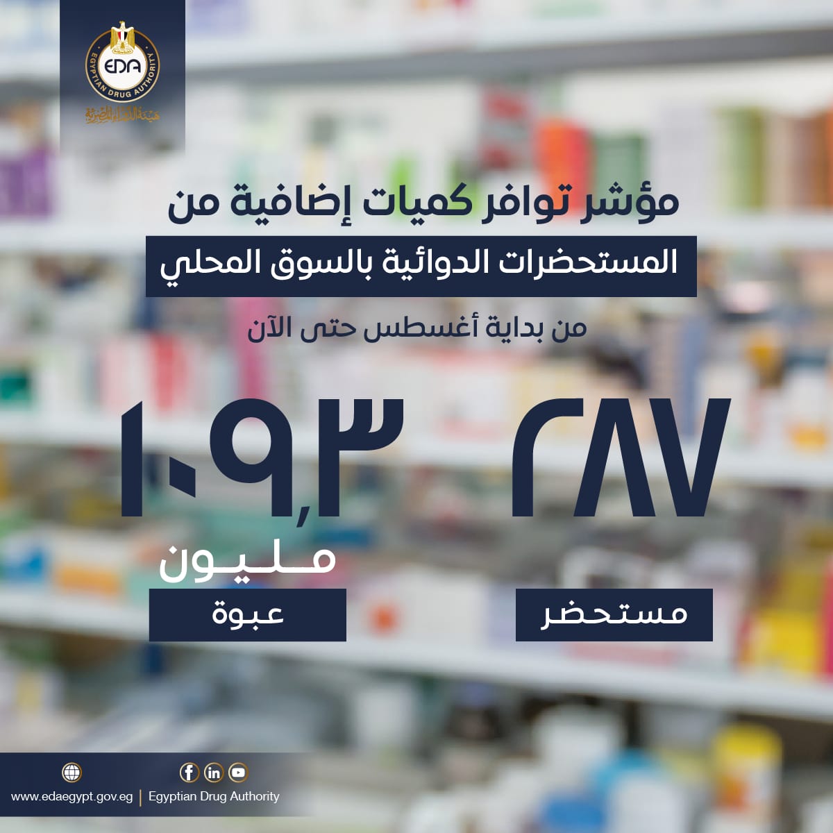 وأكدت هيئة الدواء أن ذلك يأتي في إطار حرص الحكومة على متابعة سوق الدواء، واستمرار جهود هيئة الدواء المصرية لضمان توافر الأدوية الضرورية في السوق المحلي؛ تم ضخ كميات إضافية من العديد من المستحضرات الدوائية المهمة أبرزهم أدوية الضغط والقلب والسكر والأورام والمضادات الحيوية.
