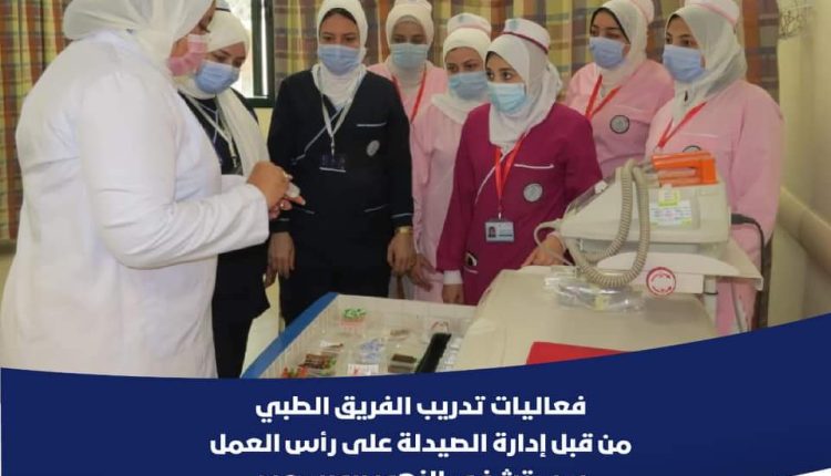 وقامت إدارة الصيدلة بالمستشفى بتدريب الفريق الطبي على رأس العمل، حيث استهدف التدريب صيادلة المستشفى والطاقم التمريضي بجميع أقسام المستشفى.