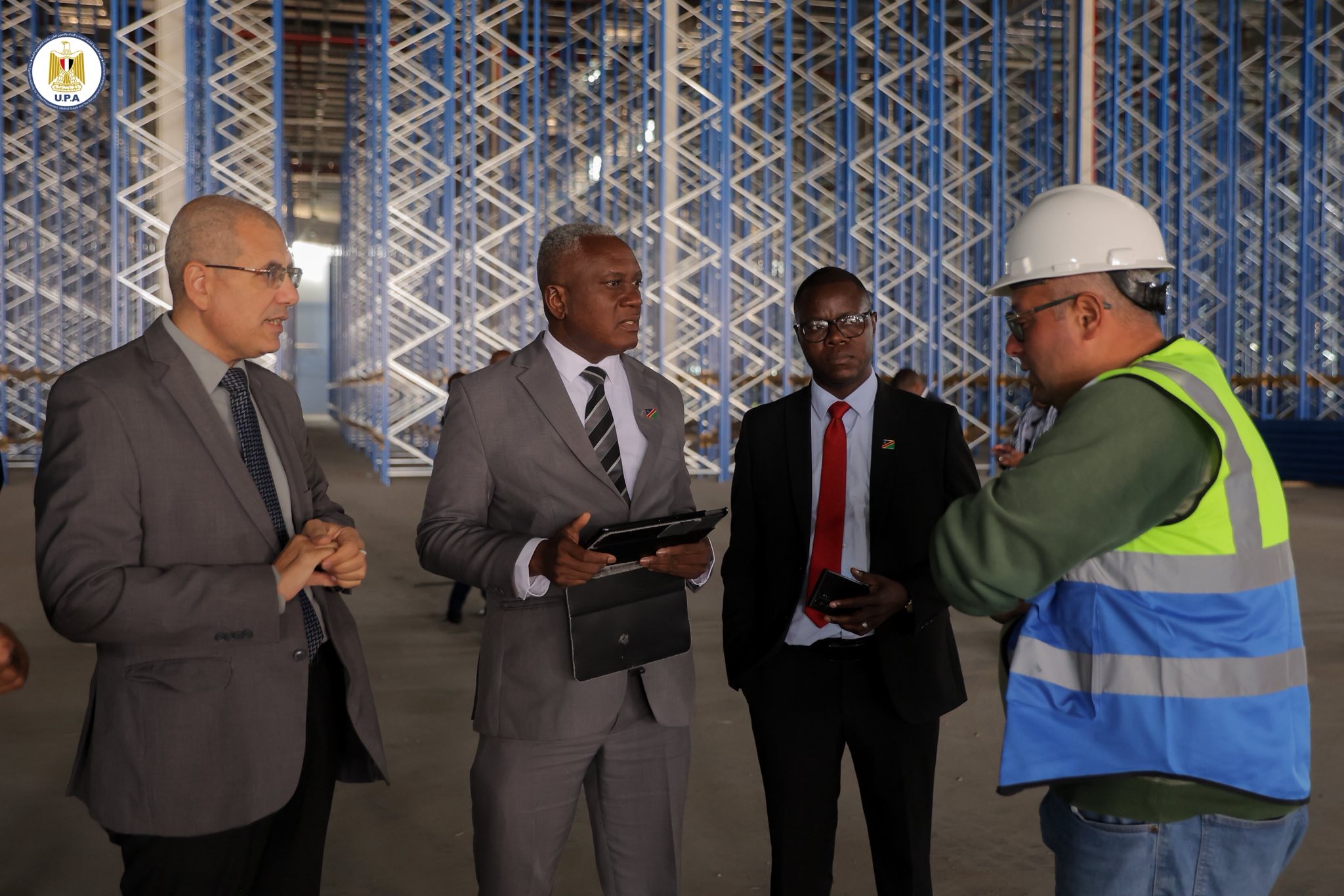 وفي هذا السياق، قام الوفد الناميبي بزيارة مشروع المخازن الاستراتيجية بالعاصمة الإدارية الجديدة، حيث اطّلع على مراحل التنفيذ الجارية، والتصميمات التشغيلية، ومنظومة العمل المستهدفة، وأشاد الوفد بحجم المشروع وأهميته الاستراتيجية، وما يمثله من رؤية مستقبلية متقدمة لتعزيز كفاءة سلاسل الإمداد الطبي وتأمين الاحتياجات الصحية وفق أحدث النظم العالمية.