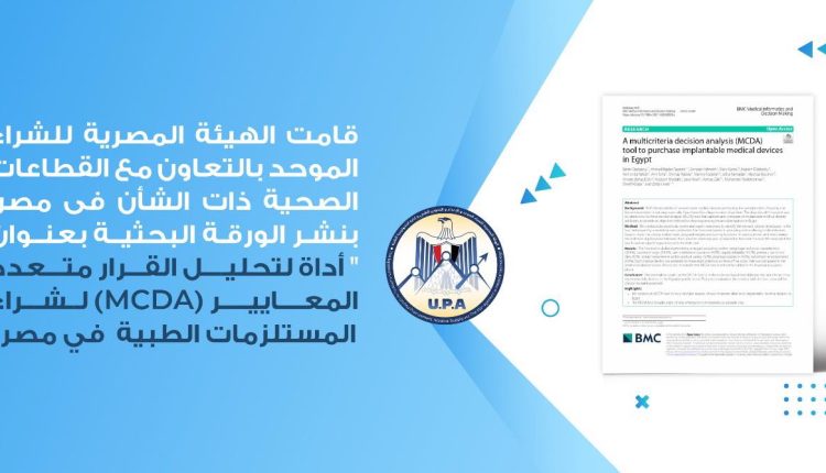 نشرت الهيئة المصرية للشراء الموحد بالتعاون مع القطاعات الصحية ذات الشأن فى مصر، ورقة بحثية بعنوان ” أداة لتحليل القرار متعدد المعايير (MCDA) لشراء المستلزمات الطبية في مصر”، وذلك بهدف مقارنة جميع سمات المستلزمات الطبية، لتوفير طريقة موضوعية للاختيار من بين الخيارات المتاحة في مصر.