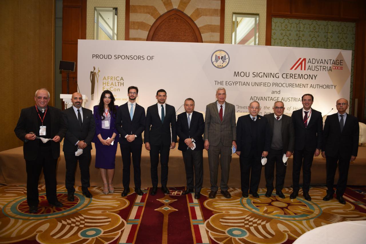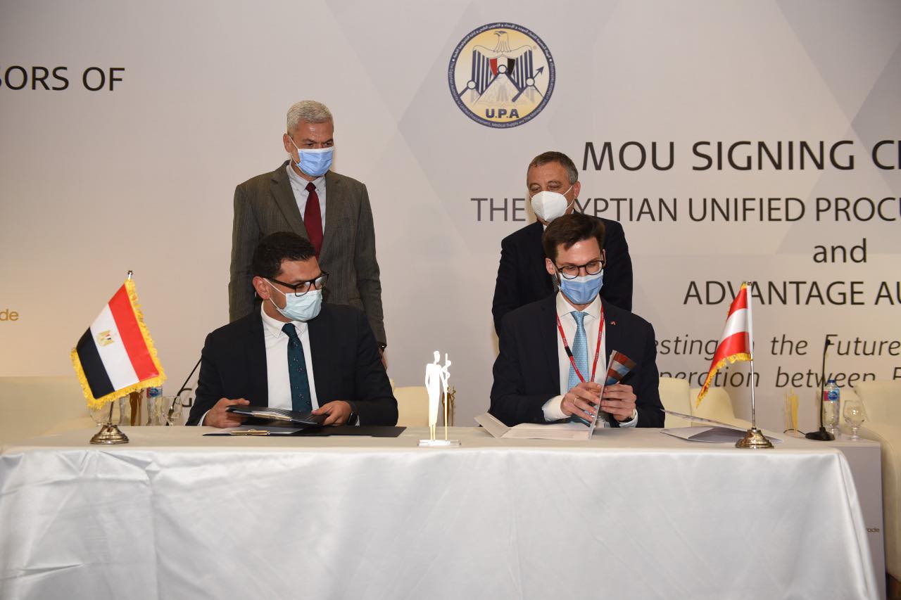 وقع كل من الدكتور عمر عبد العزيز، مدير المكتب الفني لهيئة الشراء الموحد، والسيد جورج كرن، المستشار التجاري ورئيس أدفانتج أوستريا (غرفة التجارة النمساوية)، بروتوكول تعاون بين الجانبين يهدف إلى تعزيز العلاقات التجارية بين الجانبين وتبادل الخبرات في مجال الأعمال والاستثمارات في قطاع الرعاية الصحية والصناعات التي تشملها.