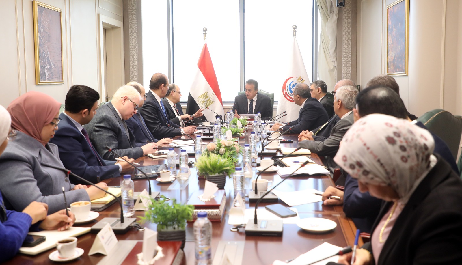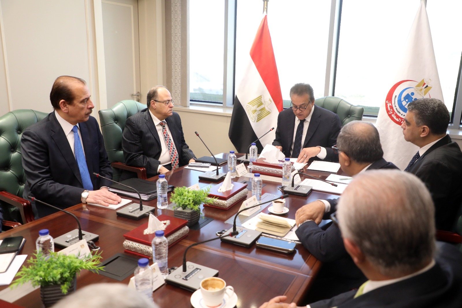 وزير الصحة يبحث مع رؤساء هيئتي الدواء والشراء الموحد وفاكسيرا والقابضة للأدوية وممثلي غرفة الصناعة دعم توطين الصناعات الدوائية