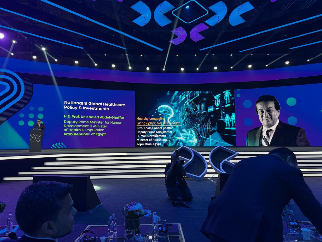 وبدأ الدكتور خالد عبدالغفار، كلمته بالترحيب بالحضور وتوجيه الشكر للوزير السعودي، مؤكدًا أهمية مناقشة قدرة السياسات الوطنية والعالمية على تحفيز استثمار مستدام في الرعاية الصحية. وأشار إلى أن التجربة المصرية تُظهر كيف يمكن للإصلاحات الاستراتيجية، والحوكمة الفعالة، والشراكات، أن تقود تحولًا صحيًا وتنمية اقتصادية متكاملة.