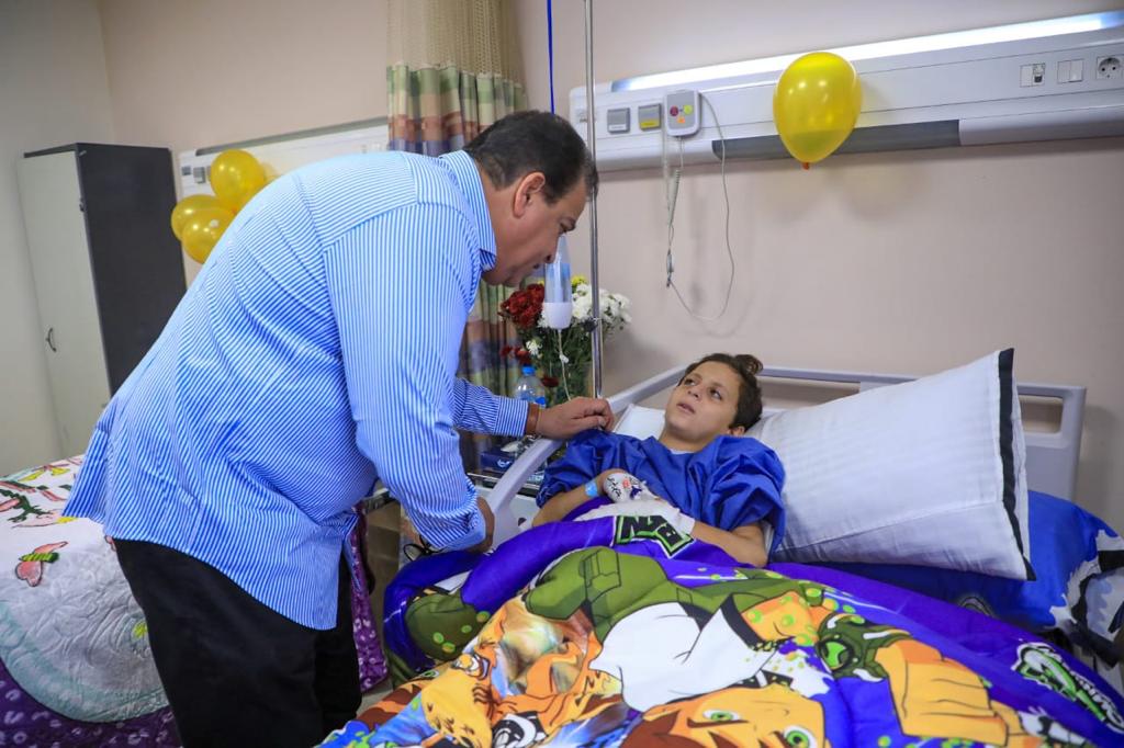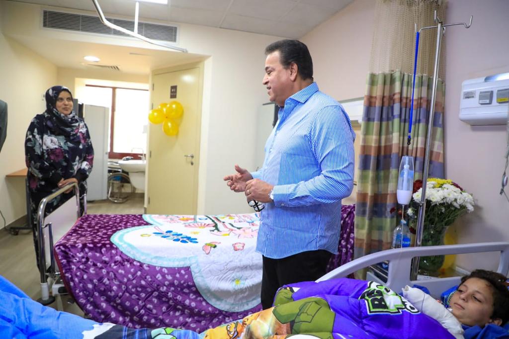وأوضح الدكتور حسام عبدالغفار المتحدث الرسمي لوزارة الصحة والسكان، أن الوزير أصر على الاطمئنان بنفسه على الحالة الصحية للطفل «عبدالله كحيل» في محاولة لرفع الروح المعنوية للطفل، مشيرا إلى أن الوزير يتابع الحالة الصحية للطفل، لحظة بلحظة، منذ صدور تكليفات فخامة الرئيس بنقله من قطاع غزة عبر معبر رفح إلى القاهرة.