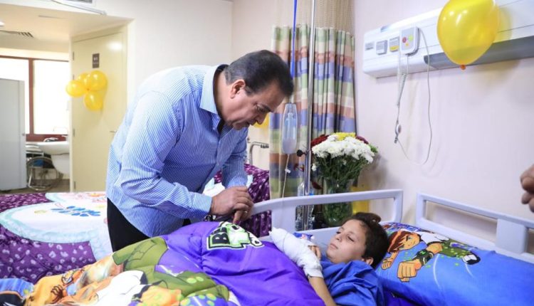 وأوضح الدكتور حسام عبدالغفار المتحدث الرسمي لوزارة الصحة والسكان، أن الوزير أصر على الاطمئنان بنفسه على الحالة الصحية للطفل «عبدالله كحيل» في محاولة لرفع الروح المعنوية للطفل، مشيرا إلى أن الوزير يتابع الحالة الصحية للطفل، لحظة بلحظة، منذ صدور تكليفات فخامة الرئيس بنقله من قطاع غزة عبر معبر رفح إلى القاهرة.